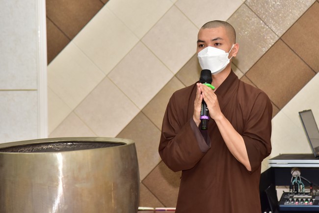 Sau đó, ĐĐ. Thích Tâm Trường, Tân Trụ trì chùa Hoằng Pháp đã có đôi lời cùng các bạn. Đại đức đã tri ân, tán thán tinh thần của các bạn về chùa tu học. Đây là cơ hội để các bạn tiếp cận với giáo lý đạo Phật nhằm ứng dụng những lời dạy vào đời sống thăng hoa, tốt đẹp hơn.