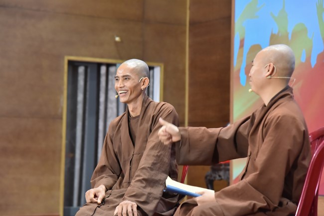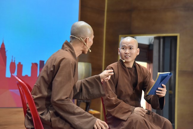 Chiều cùng ngày, các bạn tập trung về khu vực tòa nhà Pháp Luân đón xem một vở hài kịch Bái Sư Phụ do Hòa thượng viện chủ biên soạn, dưới sự diễn xuất từ quý Thầy trong nội tự.