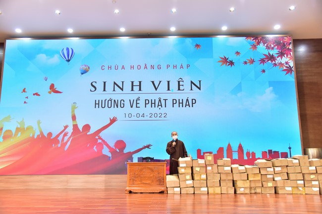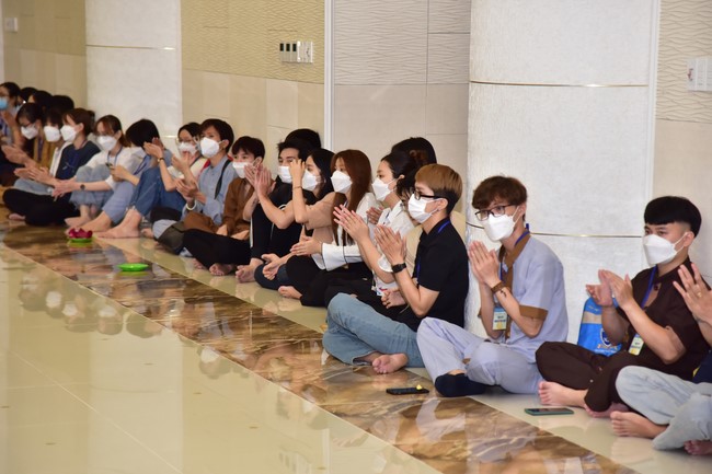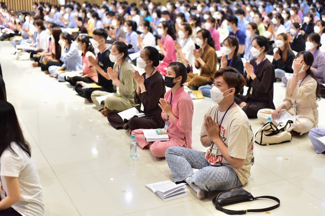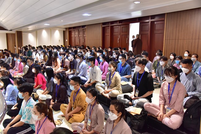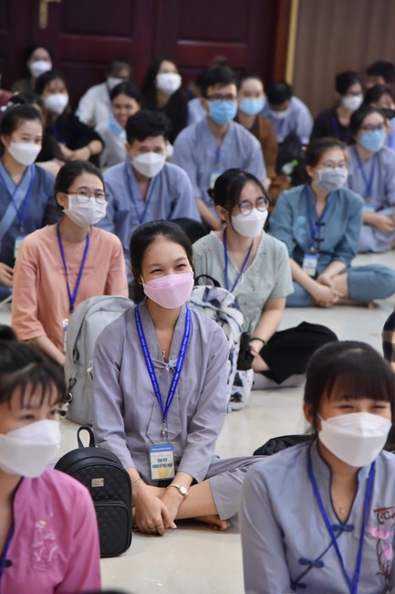 Trước đó, tối ngày 09/04/2022 (nhằm 09/03 Nhâm Dần), tại giảng đường 5 tòa nhà Pháp Luân, các bạn đã có buổi giao lưu sinh hoạt tập thể, văn nghệ, vấn đáp cùng với quý Thầy.