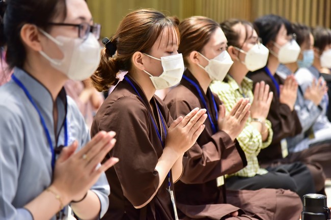 650 sinh viên các trường cao đẳng, đại học trên địa bàn Tp. HCM về chùa Hoằng Pháp tham dự ngày tu.
