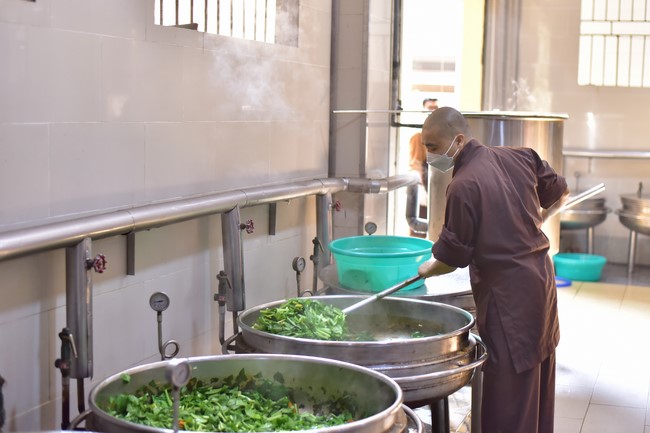 Buổi sáng, quý Thầy đã hướng dẫn các bạn tập thể dục ngoài sân Chánh điện, cùng với khoảng thời gian thiền tọa, thiền hành. Sau khi dùng điểm tâm, các bạn cùng nhau quét lá quanh khuôn viên của chùa.