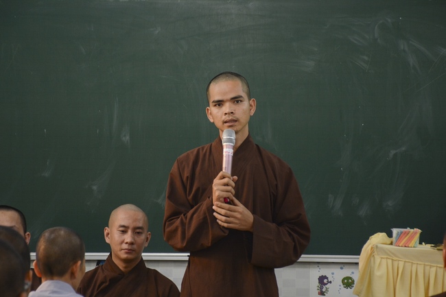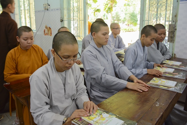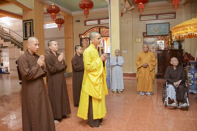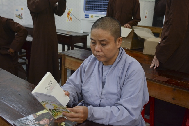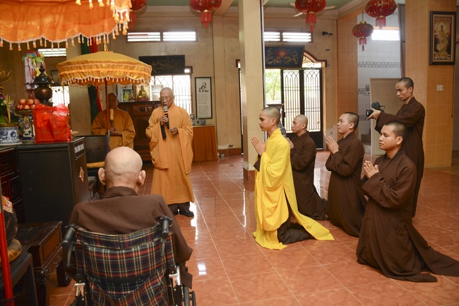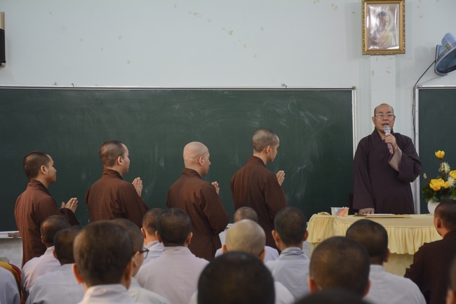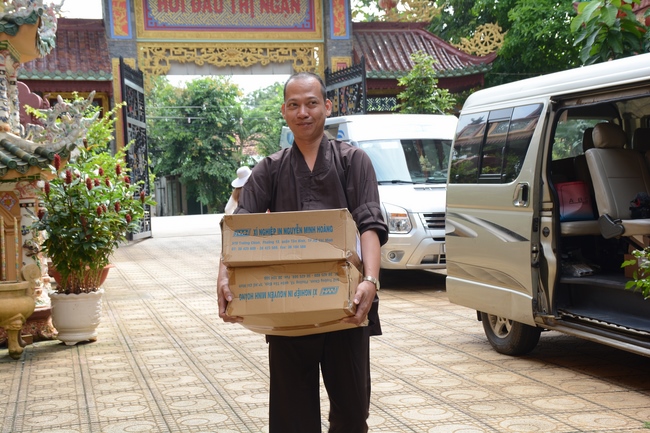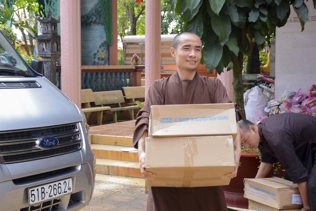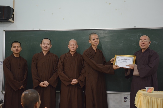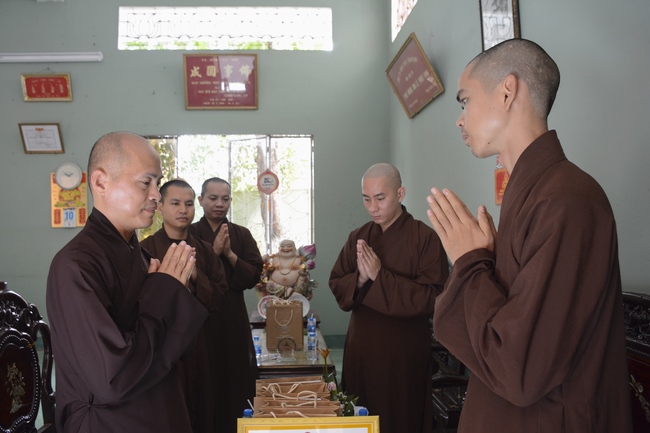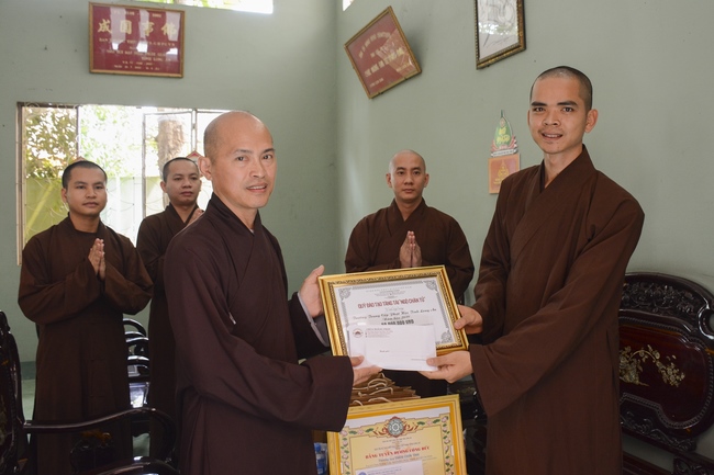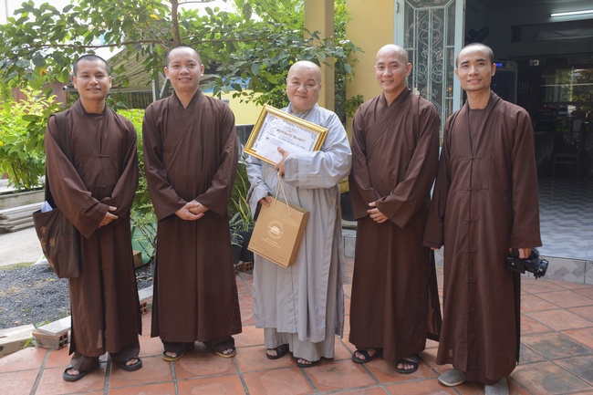 Sau đó, đoàn gởi tặng 50 triệu đồng từ “Quỹ Đào Tạo Tăng Tài Ngộ Chân Tử” và 100 phần quà pháp bảo đến trường Sơ cấp Phật học quận Tân Bình, Tp. HCM.