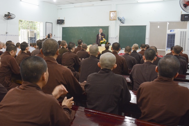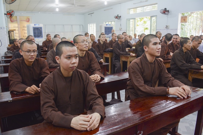 Chiều cùng ngày, đoàn trao số tiền 50 triệu đồng từ “Quỹ Đào Tạo Tăng Tài Ngộ Chân Tử” và 80 phần quà pháp bảo đến trường Trung cấp Phật học tỉnh Long An.