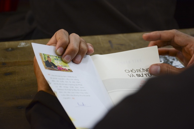 Dịp này, đoàn gởi tặng trường 150 phần quà pháp bảo, gồm: Lành Dữ Nghiệp Báo, Chó Rừng Và Sư Tử, Bài Học Thiếu Nhi. Đại diện trường Trung cấp Phật học tỉnh Tây Ninh, HT. Thích Huệ Tâm có đôi lời sách tấn và gởi lời tri ân đến TT. Thích Chân Tính cùng chư Tăng chùa Hoằng Pháp.