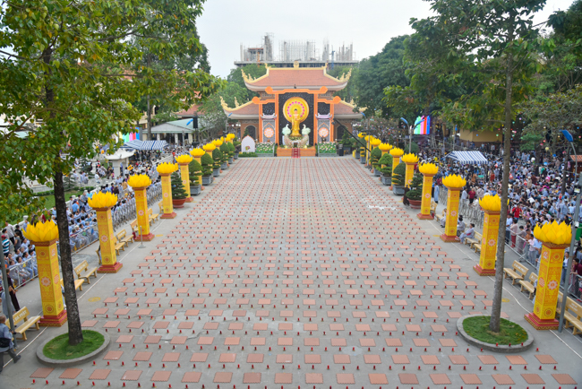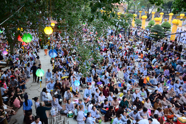 Trước lúc buổi lễ được diễn ra, Phật tử từ khắp nơi đã tập trung về chùa rất sớm, ai cũng mong có được một chỗ ngồi và chờ đợi để được chiêm ngưỡng vẻ đẹp lung linh huyền ảo của quang cảnh ngày Đại lễ.