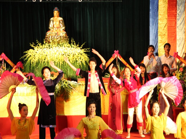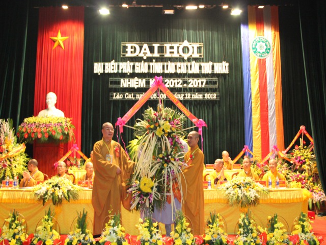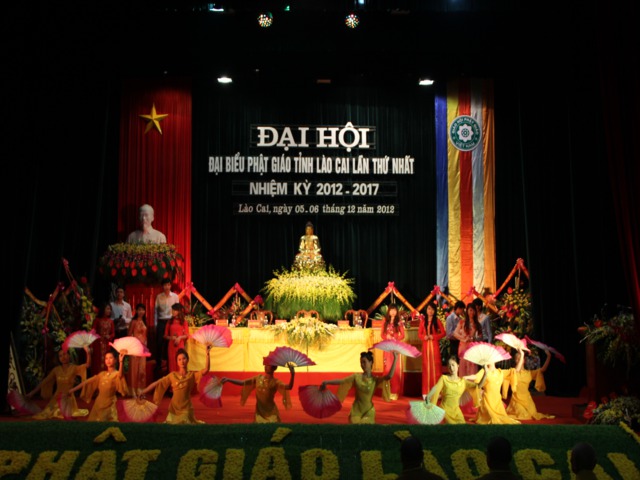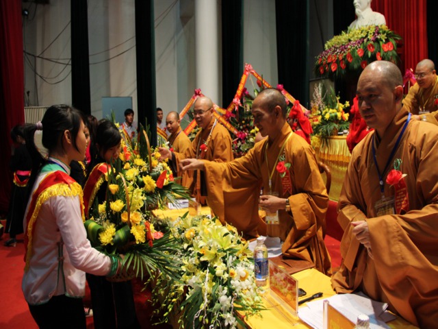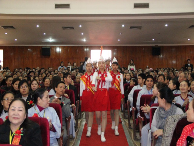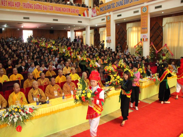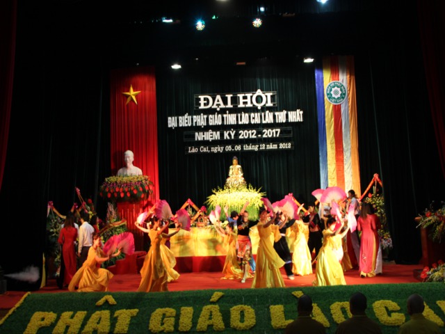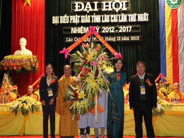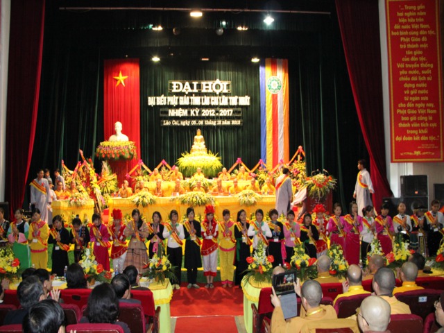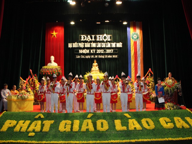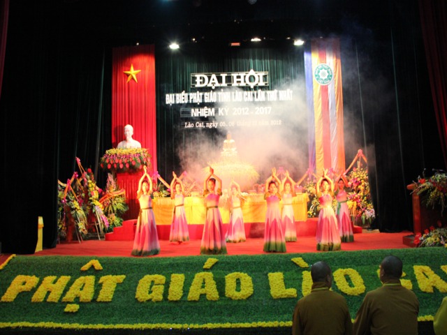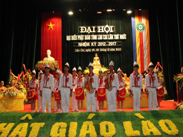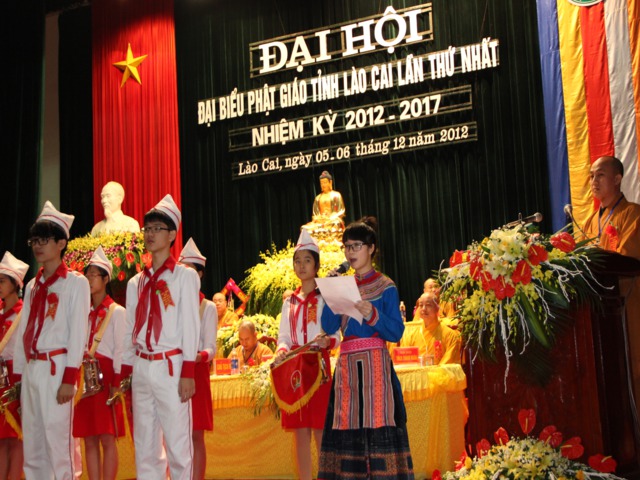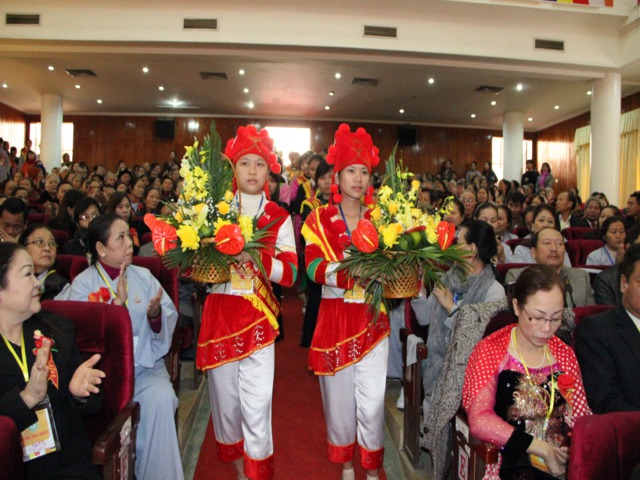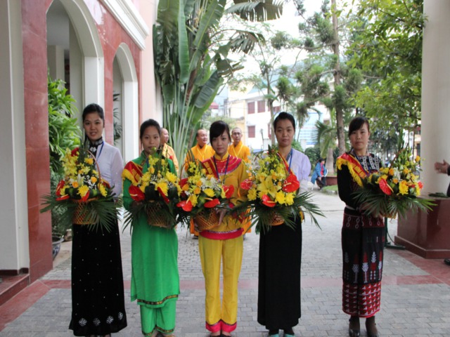 Chào mừng Đại hội có các cháu thanh thiếu nhi Phật tử đại diện cho Đồng bào 25 dân tộc tỉnh Lào Cai dâng hoa chúc mừng Đại hội.