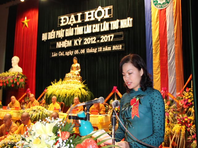Tại Đại hội bà Hà Thị Nga – Phó Chủ tịch UBND tỉnh Lào Cai phát biểu và tặng hoa chúc mừng Đại hội.