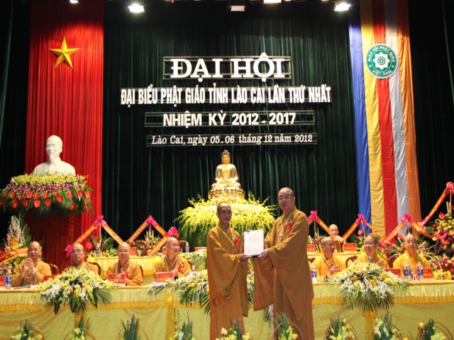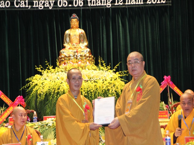 sự TW đọc và trao quyết định Thành lập ban Trị sự Phật giáo Lào Cai của