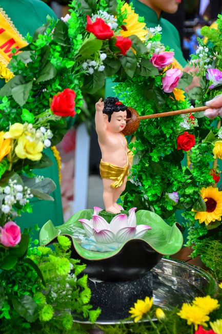 Ba hồi chuông trống bát nhã vang lên, chư Tăng và Phật tử chính thức bước vào nghi thức rước Phật đản sinh, tắm Phật và thả bong bóng – một biểu tượng của hòa bình và tự do.