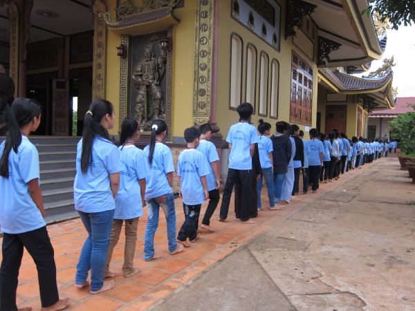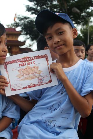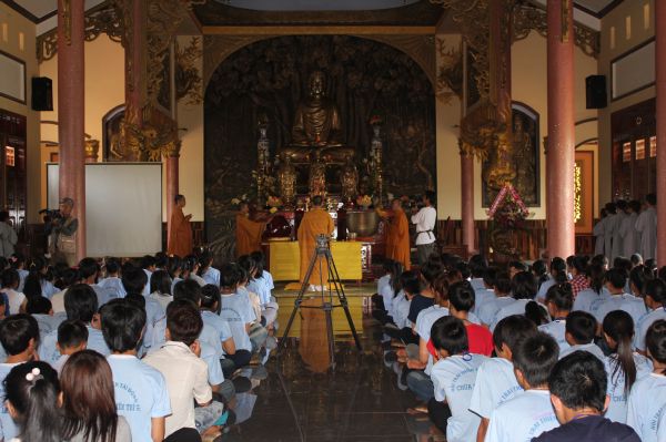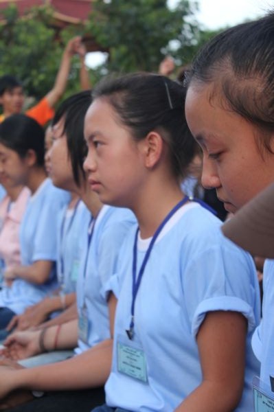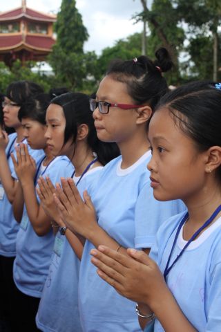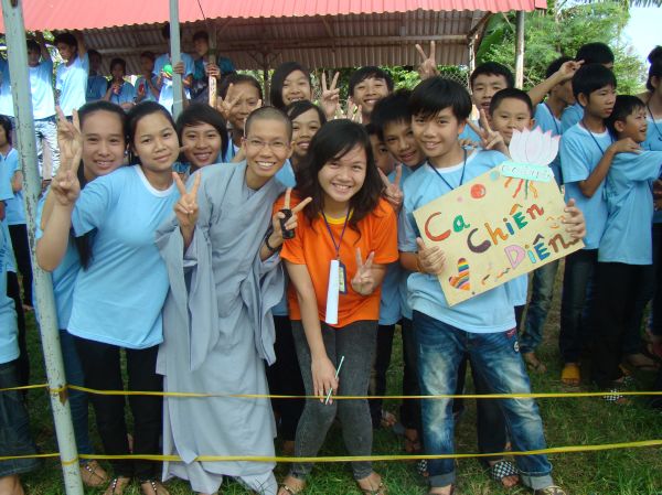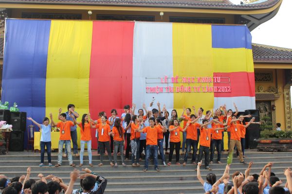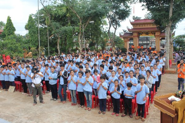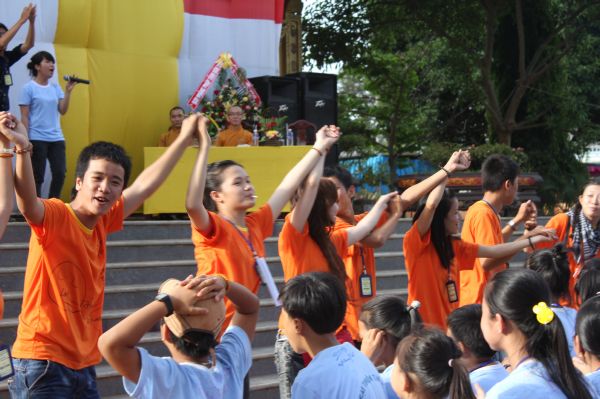 Các bạn trẻ cũng được tham dự vào hàng ngũ làm những đứa con ngoan của Phật. Lễ Quy y Tam bảo được diễn ra trong trang nghiêm thanh tịnh, hơn 200 bạn trẻ phát tâm Bồ đề nương tựa tâm linh vào ba ngôi báu. Cũng trong ngày cuối này, các anh chị tình nguyện viên đã tổ chức sân chơi ngoài trời cho các em bằng những trò chơi dân gian vui nhộn.