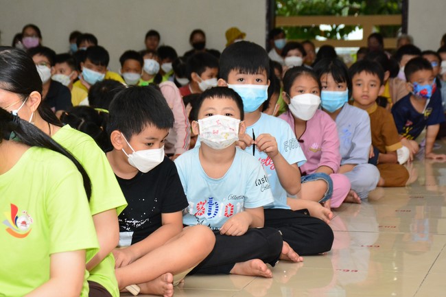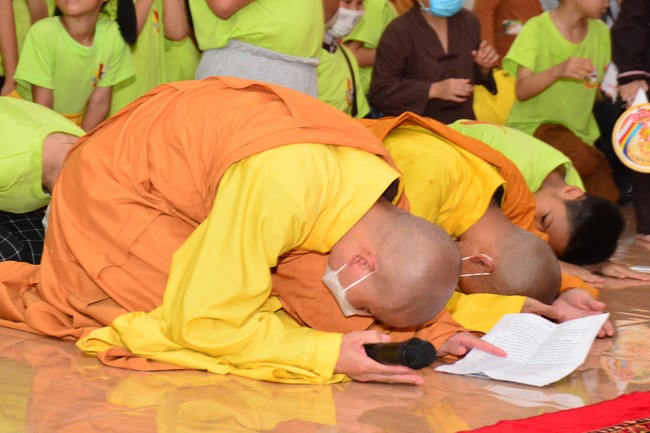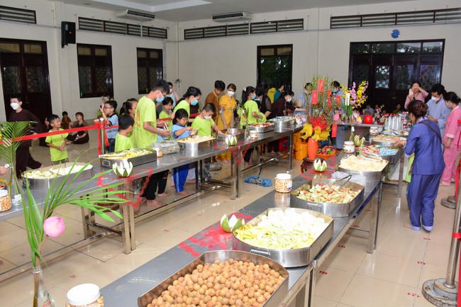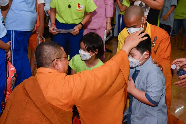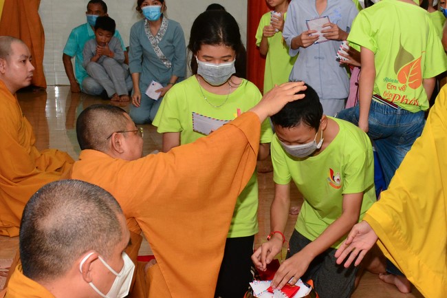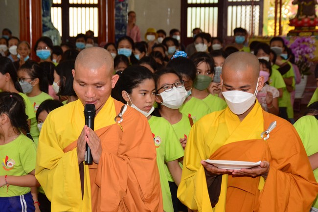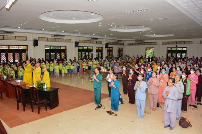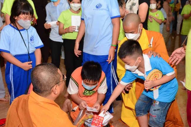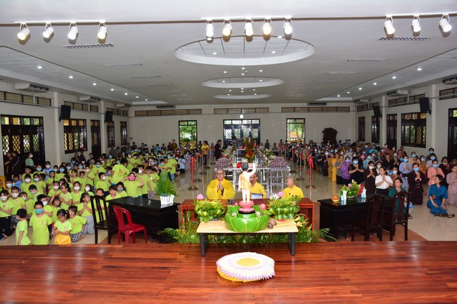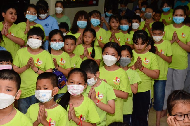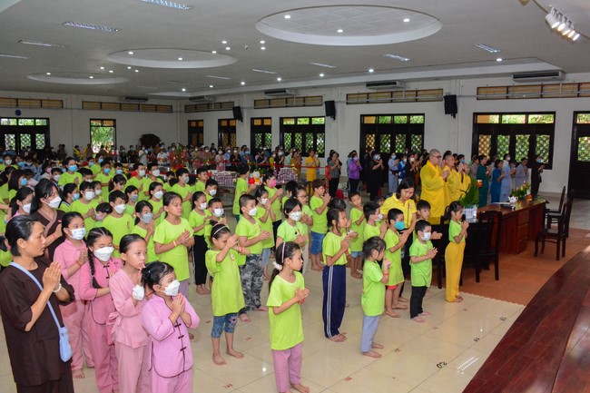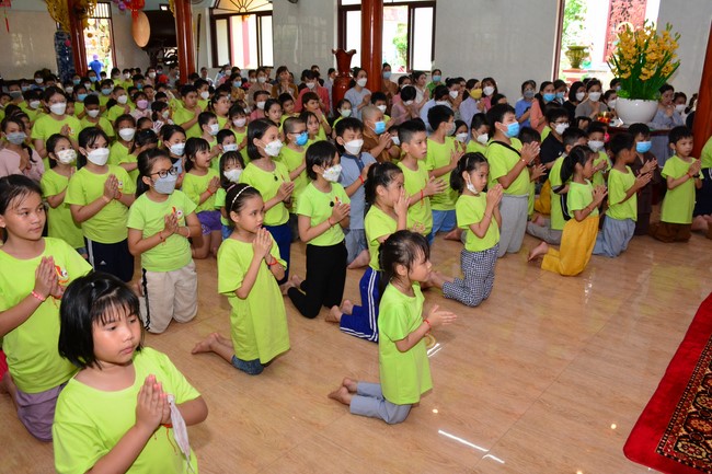 Sau đó, đại chúng cử hành nghi thức tắm Phật truyền thống. Đây là dịp nhắc các em về cội nguồn, ý nghĩa ngày Khánh đản của đức Tôn sư. Nhằm gieo duyên lành, gieo vào tâm thức của các em về hạnh nguyện tốt đẹp của Ngài, để các em noi theo học tập.