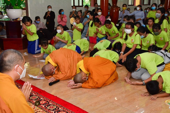 Tại chùa Giác Nguyên, đoàn đã đảnh lễ Tam bảo, vấn an sức khỏe và cúng dường gieo duyên lên Thượng tọa trụ trì, TT. Thích Minh Thanh, Trưởng Ban Trị sự GHPG huyện Hóc Môn cùng chư Tăng trong bổn tự. Thượng tọa có đôi lời chia sẻ cùng với bậc phụ huynh về phương cách giáo dục các em trên tinh thần Phật giáo cũng như nhắm nhủ các em thực hành đời sống đạo đức.