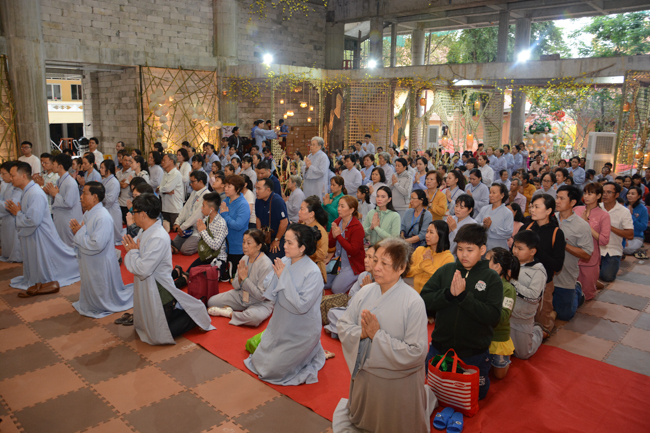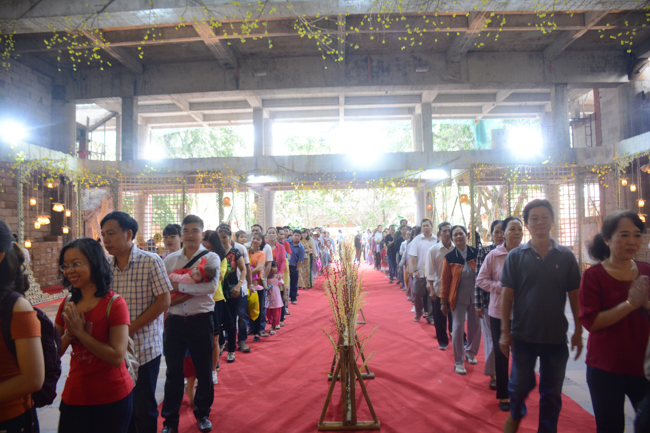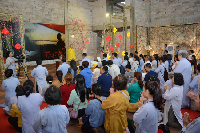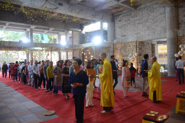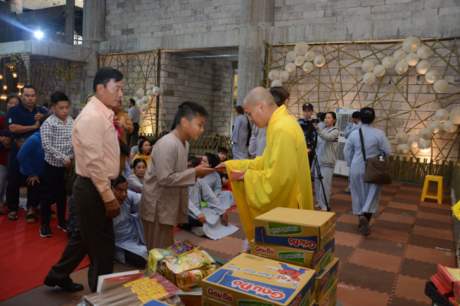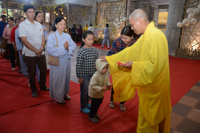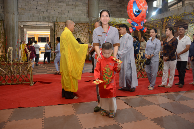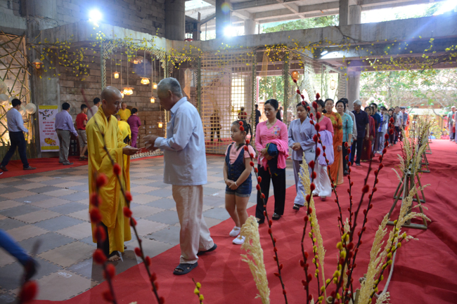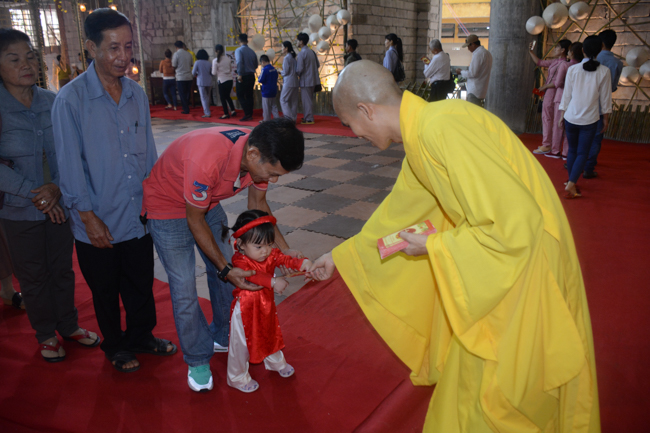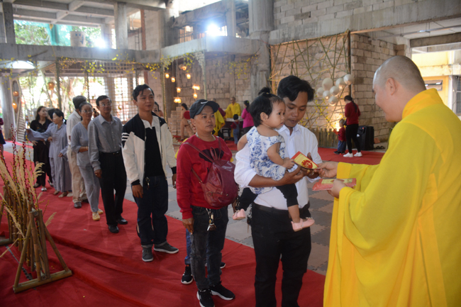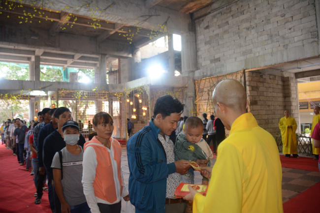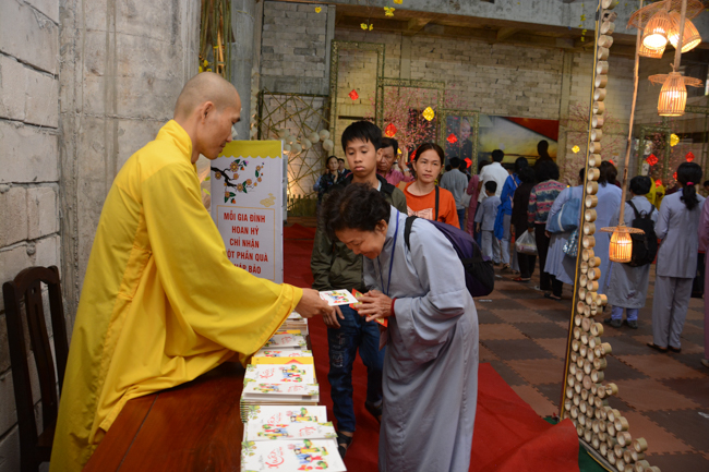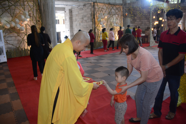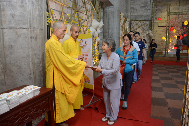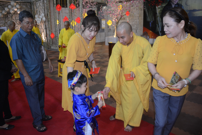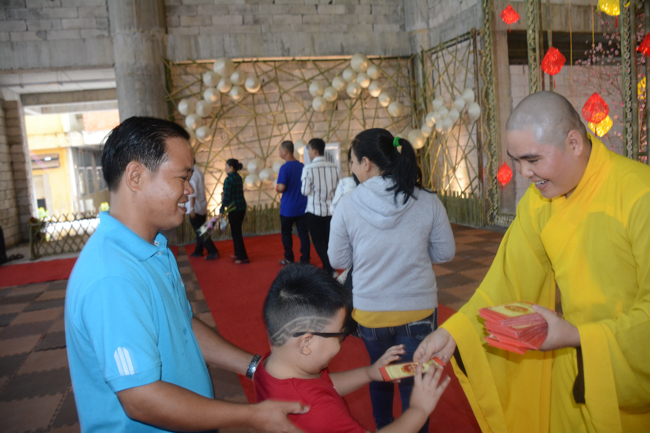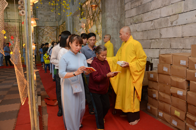 Trong niềm hân hoan của ngày đầu năm mới, chư Tăng chùa Hoằng Pháp đã hiện diện tại Tòa Nhà Đa Năng từ 7h00 sáng đến 20h00 tối để tiếp đón và tặng lộc lì xì đầu năm. Nhân dịp này, từ đêm giao thừa đến hết ngày mùng một Tết, quý thầy đã gửi tặng hơn 70.000 bao lì xì và hơn 40.000 cuốn sách Tặng Phẩm Xuân.