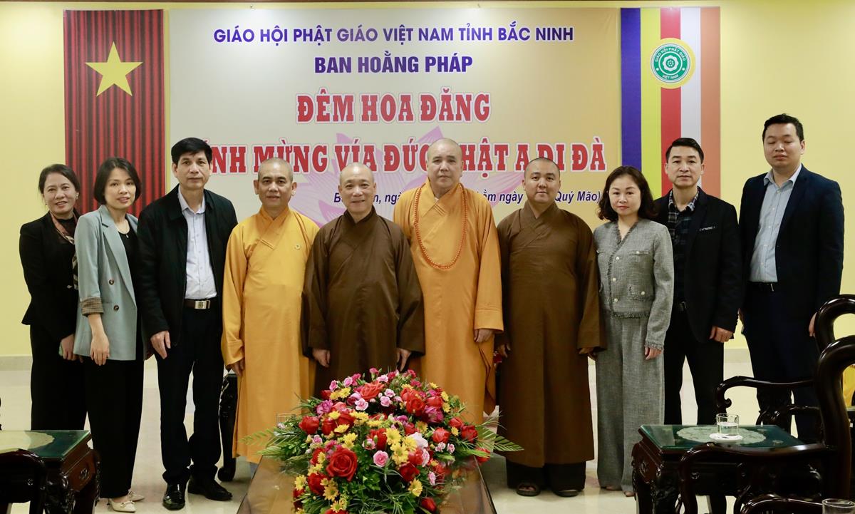 Chứng minh buổi lễ có Trưởng lão Hòa thượng Thích Thanh Dũng - Phó Pháp chủ, Chánh thư ký HĐCM GHPGVN; Hòa thượng Thích Bảo Nghiêm - Phó chủ tịch HĐTS, Trưởng Ban Hoằng pháp TW GHPGVN; Hòa thượng Thích Thanh Phụng - Ủy viên HĐTS, Trưởng BTS GHPGVN tỉnh Bắc Ninh; Thượng tọa Thích Thanh Trung - Ủy viên HĐTS, Phó trưởng Ban thường trực BTS GHPGVN tỉnh Bắc Ninh; Thượng tọa Thích Thiện Hạnh - Phó BTS, Trưởng Ban Hoằng pháp GHPGVN tỉnh Bắc Ninh; Thượng tọa Thích Thanh Sơn - Phó ban kiêm Chánh thư ký BTS GHPGVN tỉnh Bắc Ninh cùng chư Tôn đức Tăng Ni trong BTS Phật giáo tỉnh nhà.