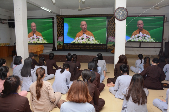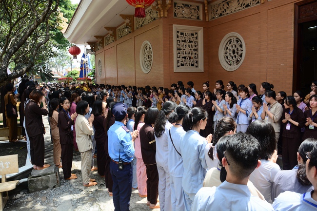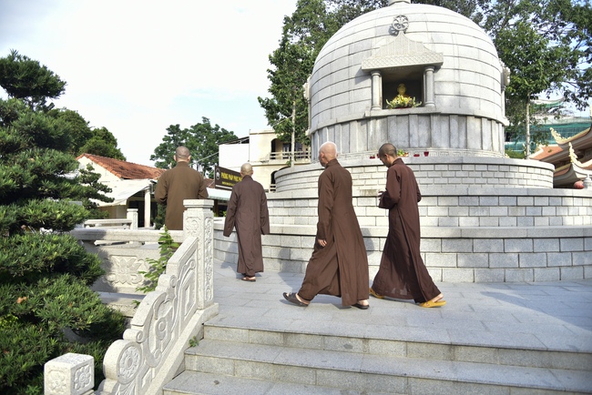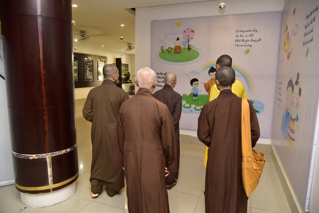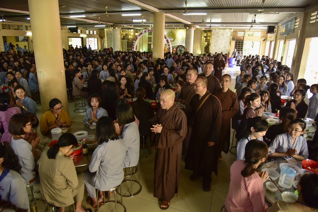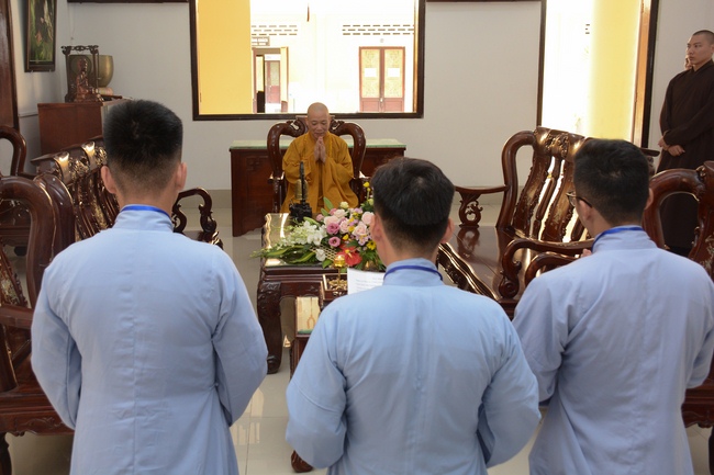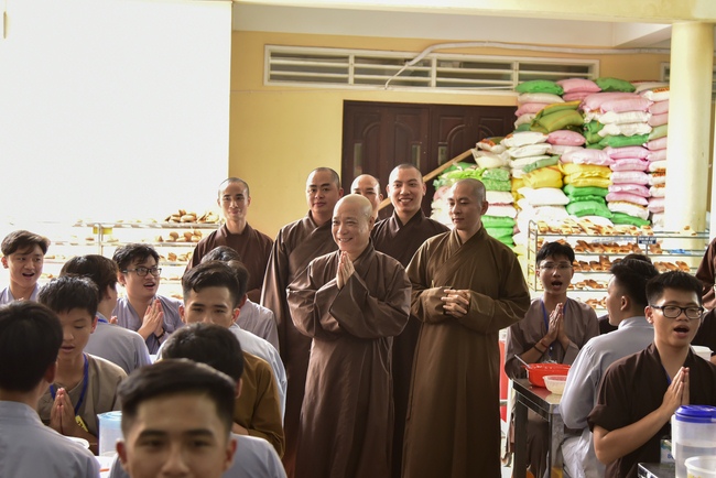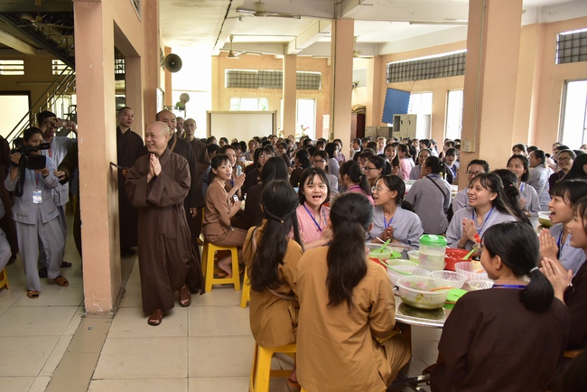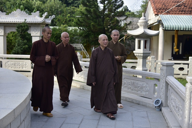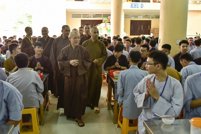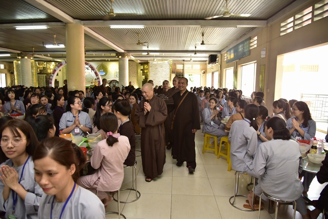 Ngoài thời pháp thoại, Hòa thượng cũng dành thời gian thăm và tham quan quanh chùa cũng như thăm hỏi, động viên các bạn khóa sinh, đội ngũ công quả phục vụ chùa.
