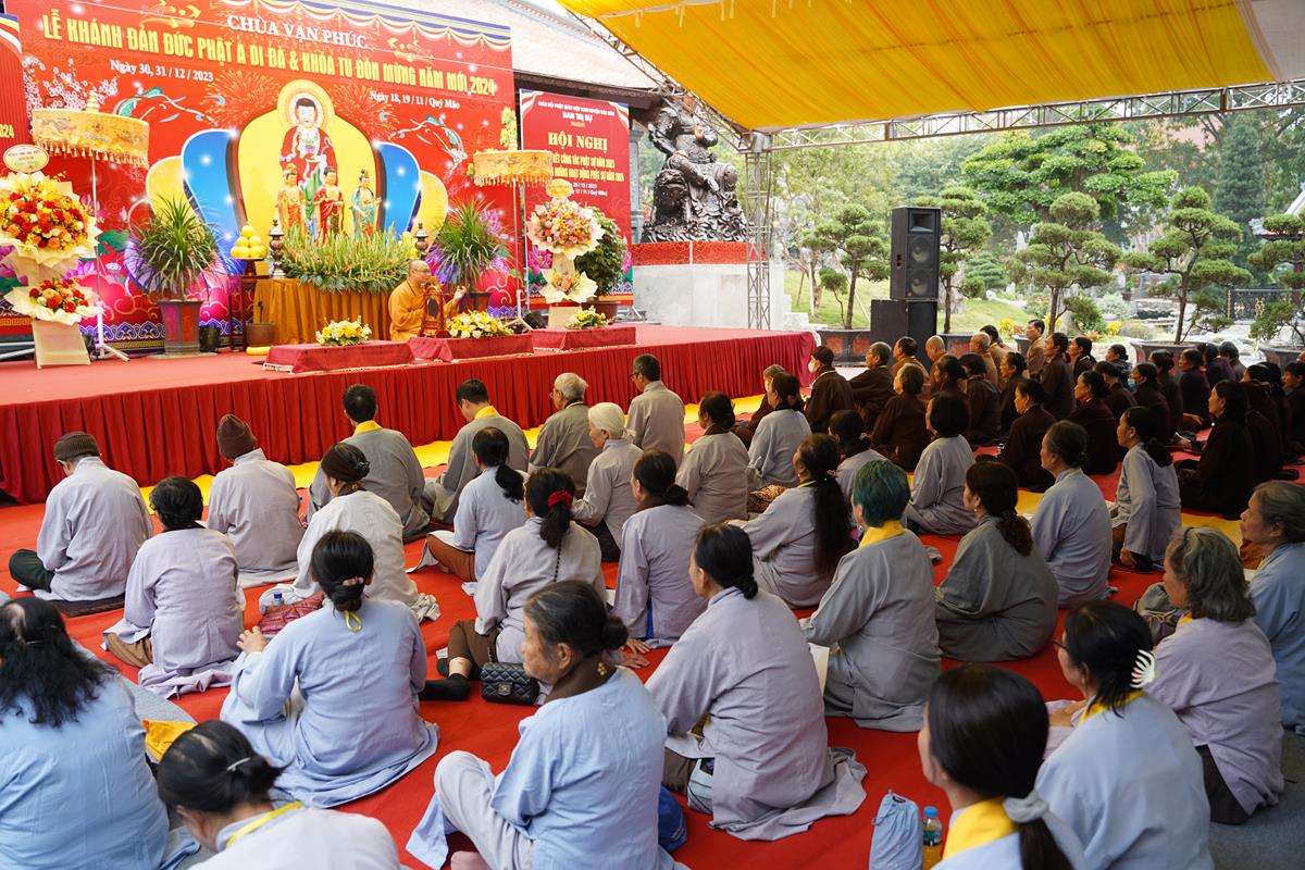 Trong ngày tu tập đầu tiên này, đại chúng đã có những giờ phút vô cùng an lạc, khi buổi sáng được đón nghe thời pháp thoại ý nghĩa của Thượng tọa Thích Chiếu Tuệ - Ủy viên HĐTS, Phó trưởng Ban thường trực Ban Hoằng pháp TW, Trưởng Phân ban Pháp hội Đạo tràng, Trưởng Ban tổ chức giảng giải về "Ý nghĩa ngày vía Đức Phật A Di Đà".