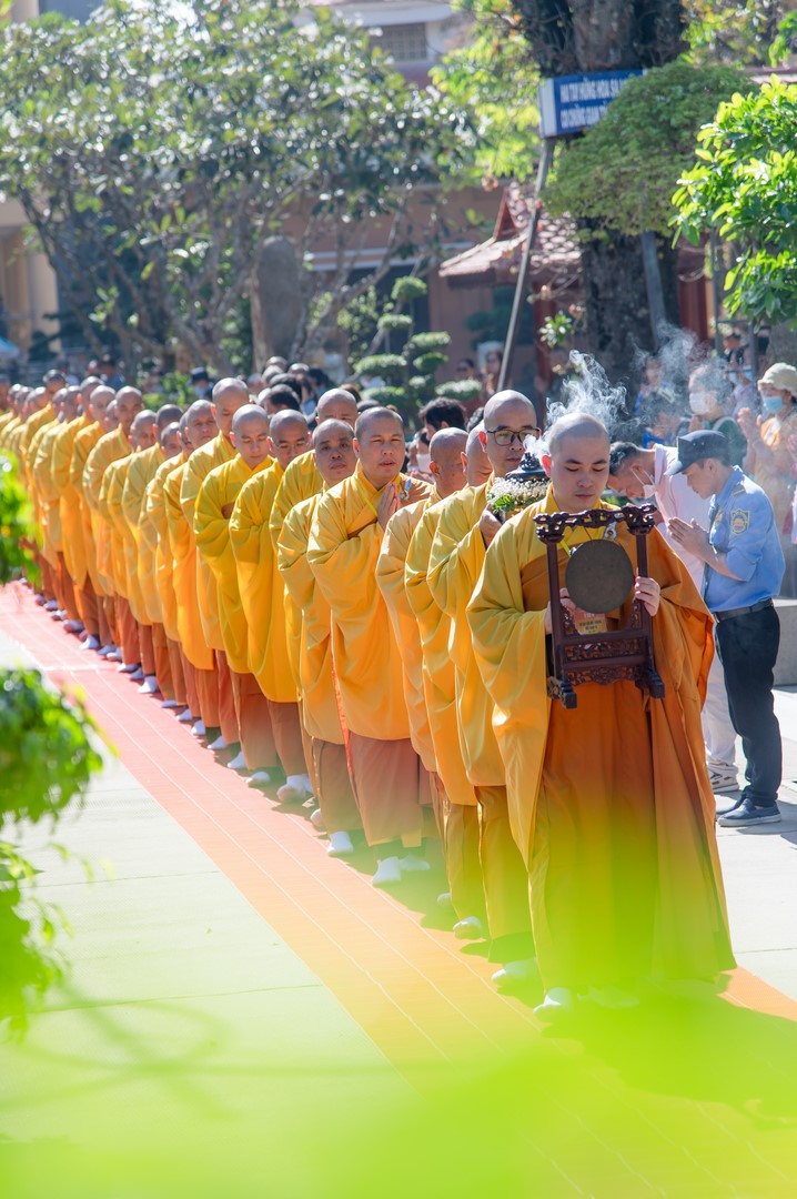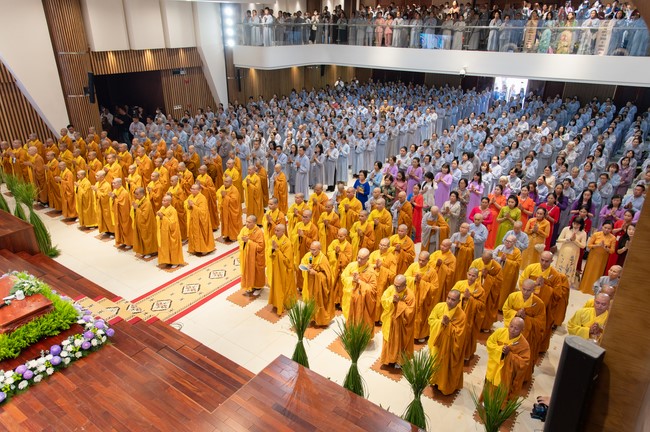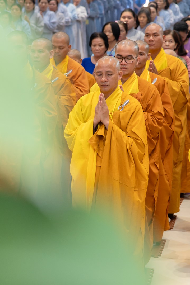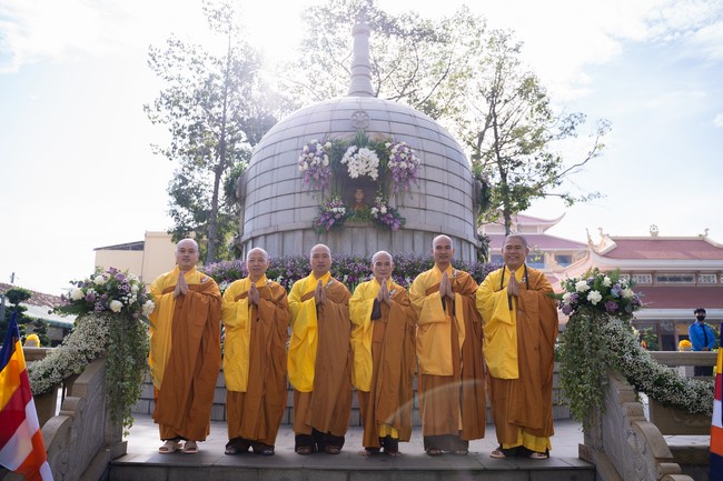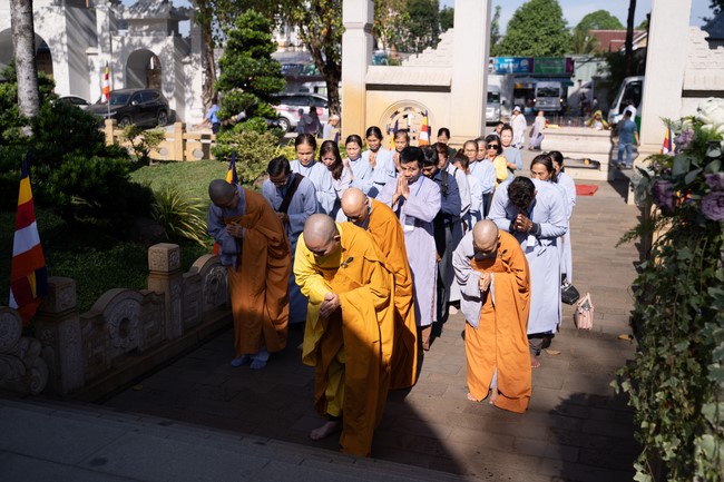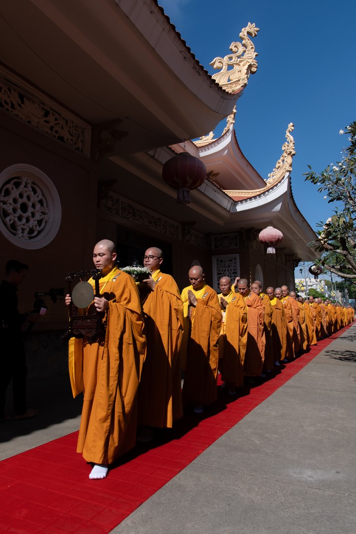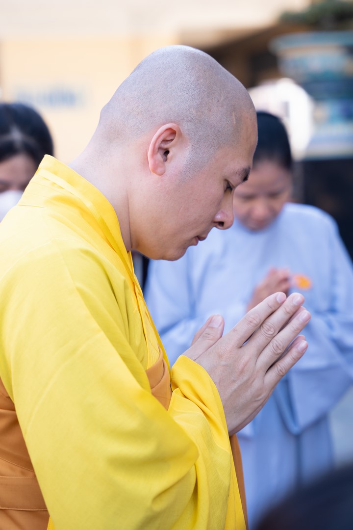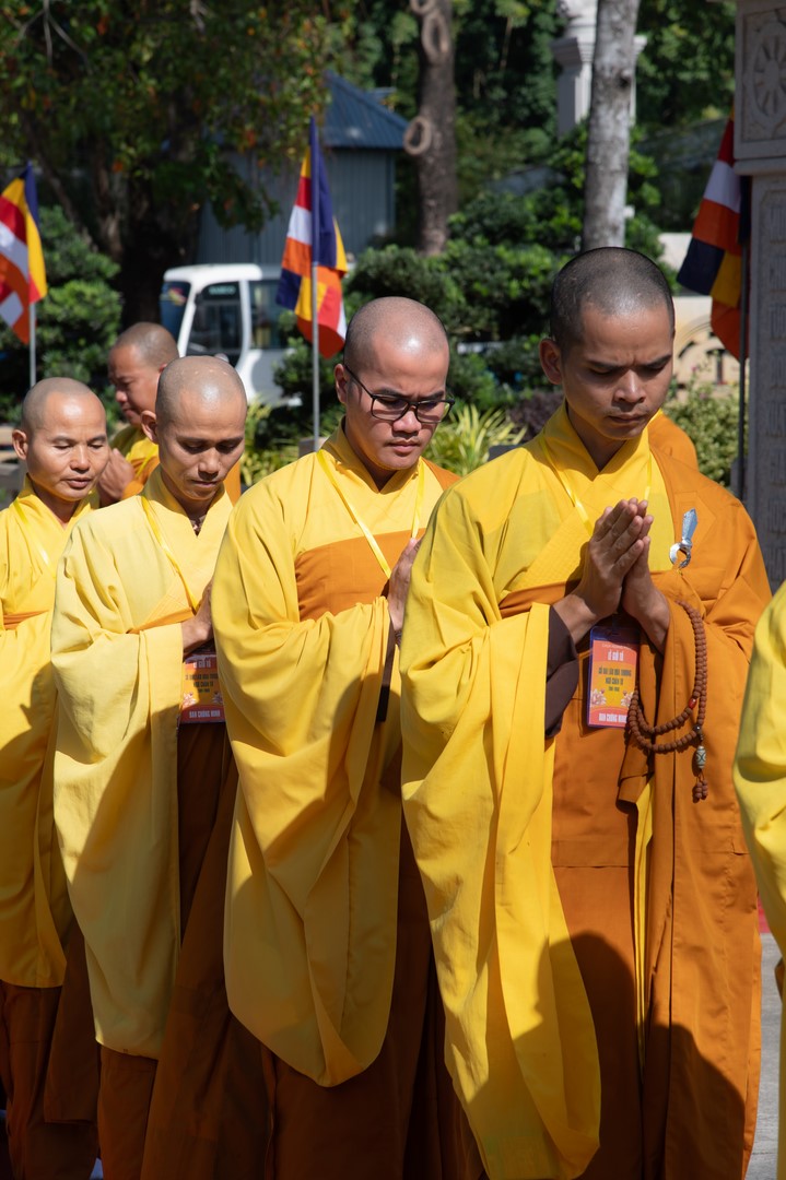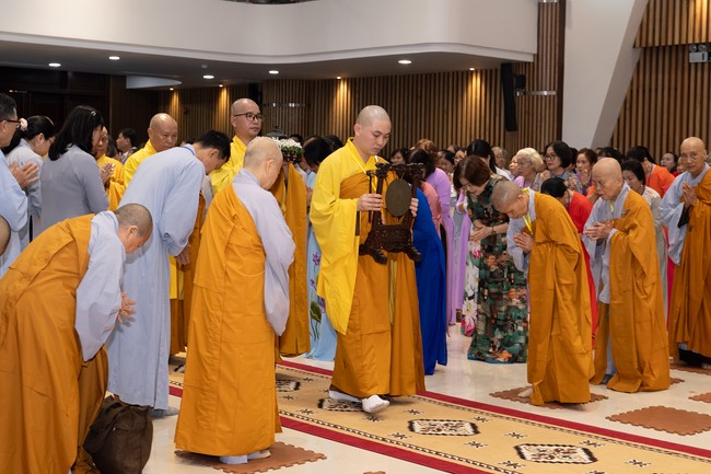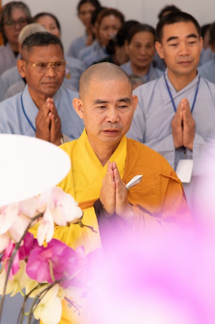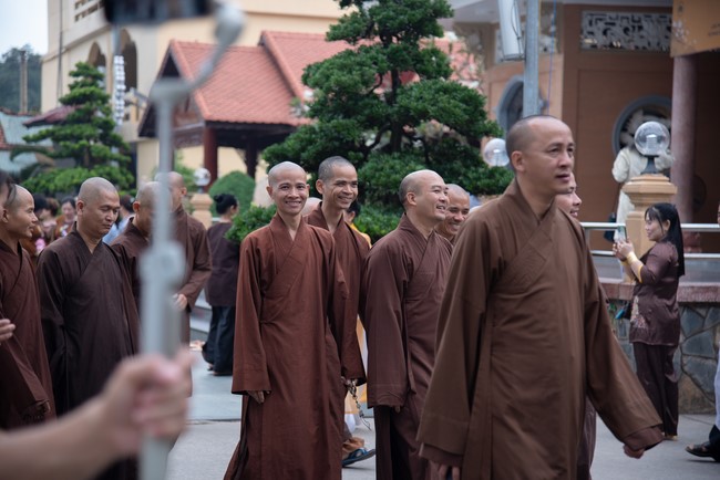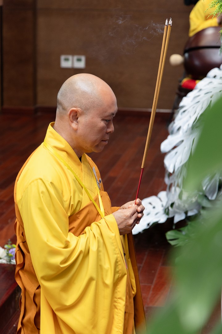Vào lúc 08h45, đại chúng đồng thành kính cung thỉnh chư Tôn đức kinh hành, nhiễu quanh Tháp tổ, sau đó hướng về Pháp đường 1, tòa nhà Pháp Luân cử hành nghi thức lễ tưởng niệm.