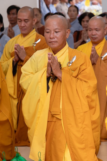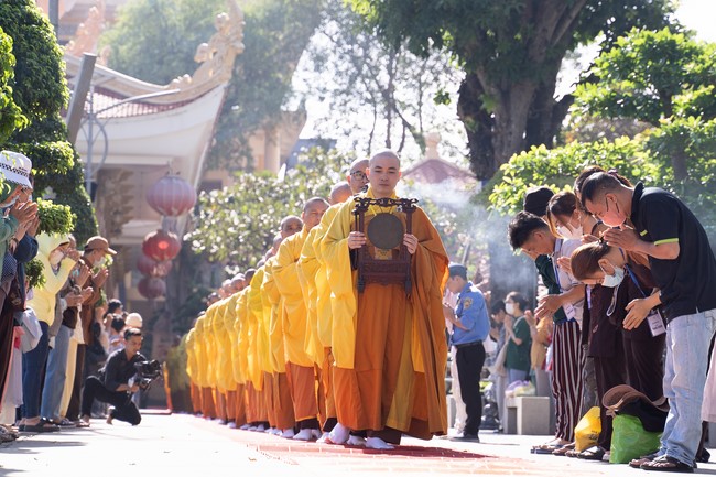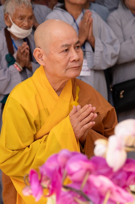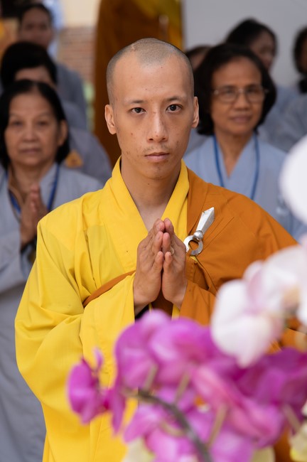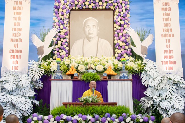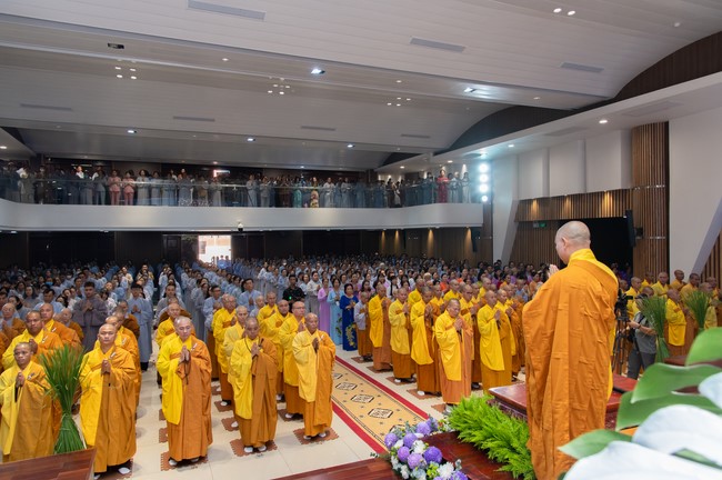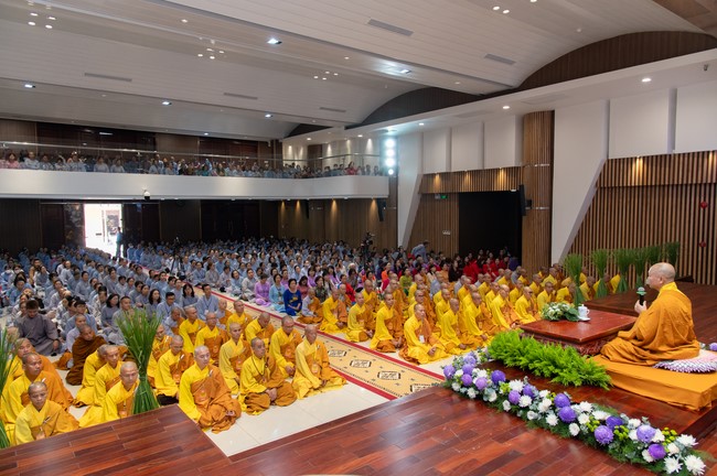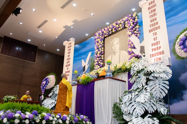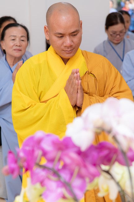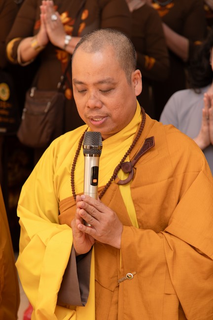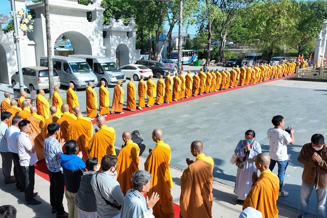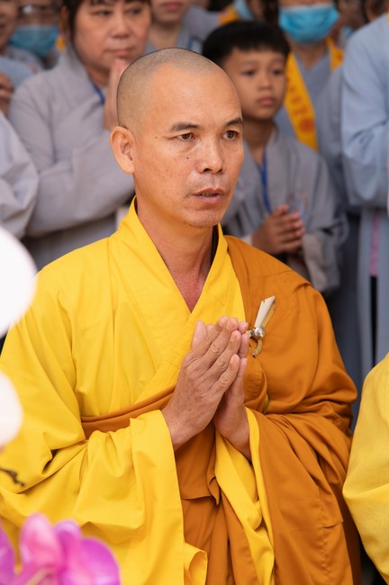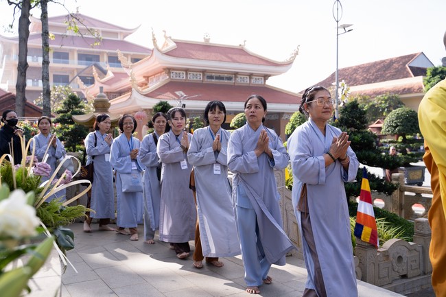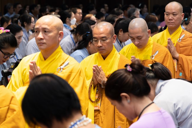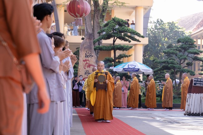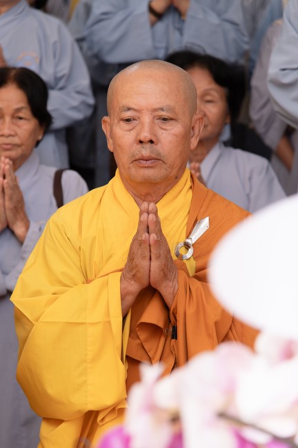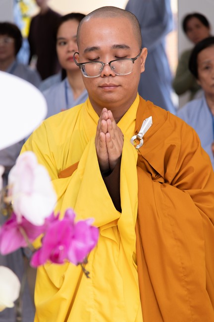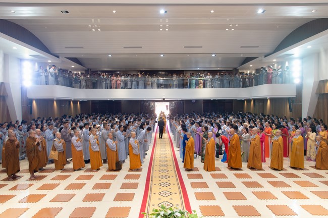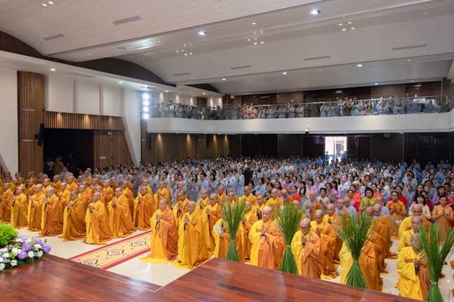 Vào lúc 08h45, đại chúng đồng thành kính cung thỉnh chư Tôn đức kinh hành, nhiễu quanh Tháp tổ, sau đó hướng về Pháp đường 1, tòa nhà Pháp Luân cử hành nghi thức lễ tưởng niệm.