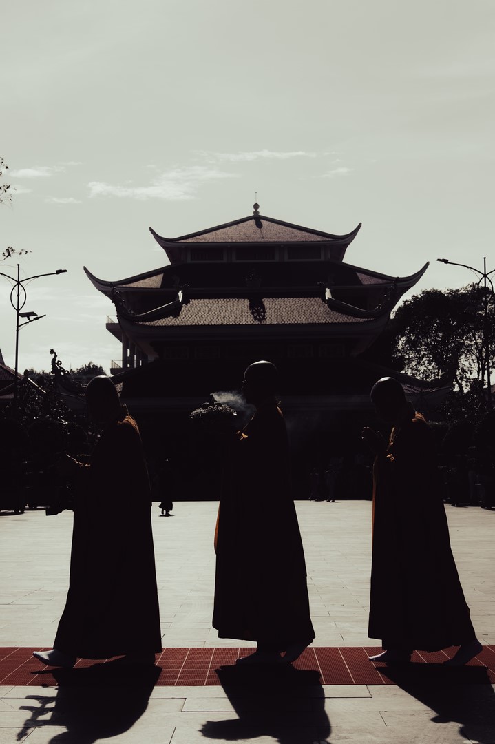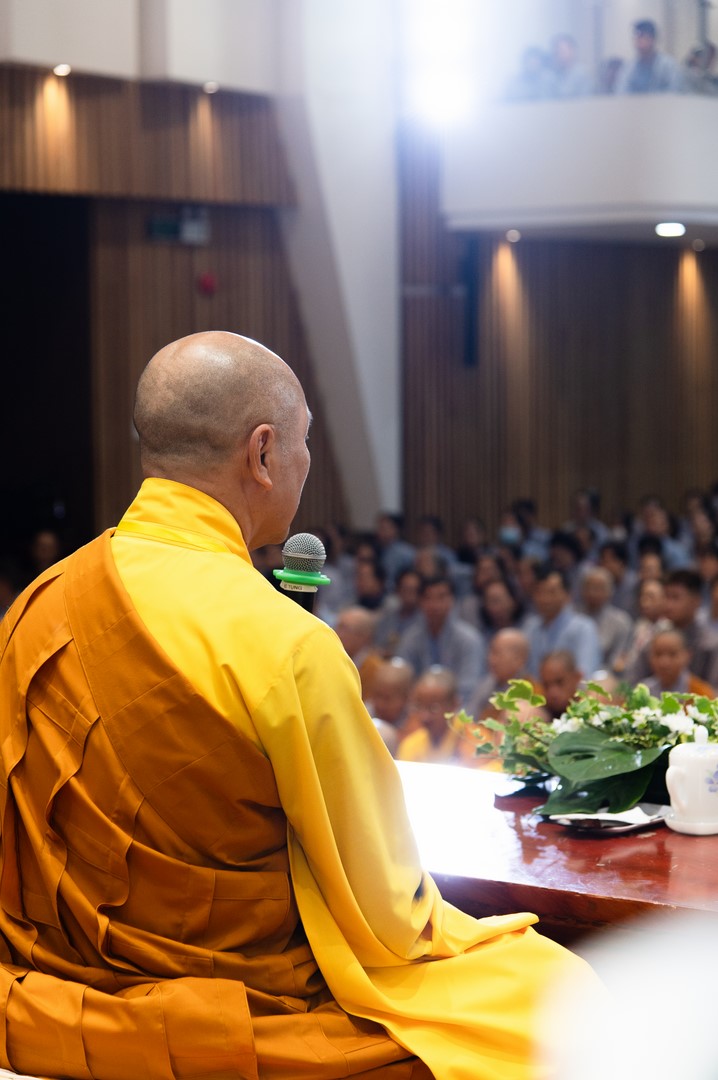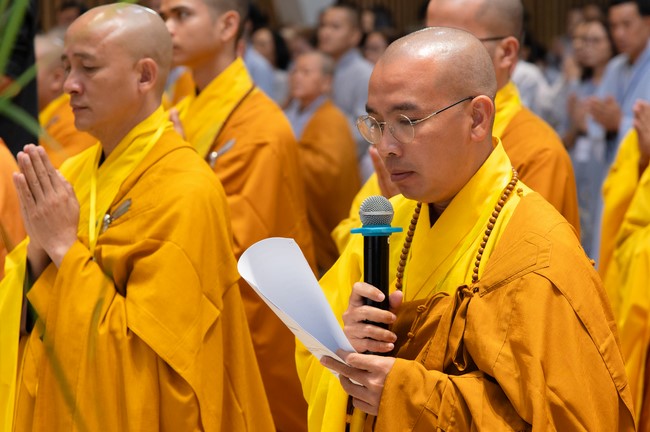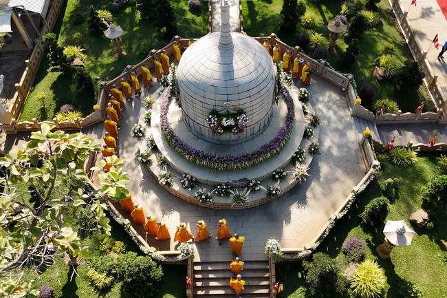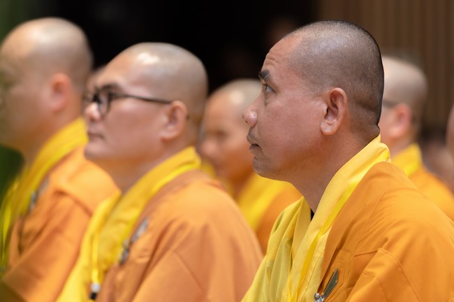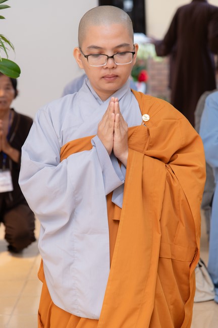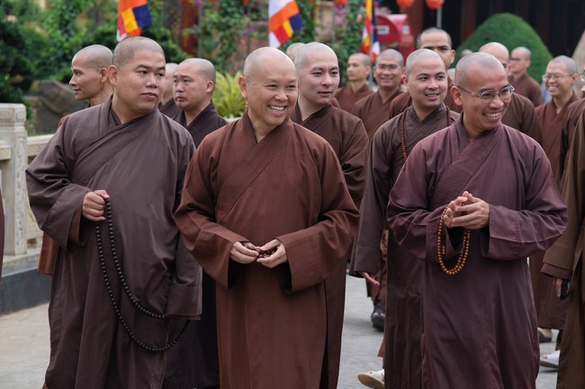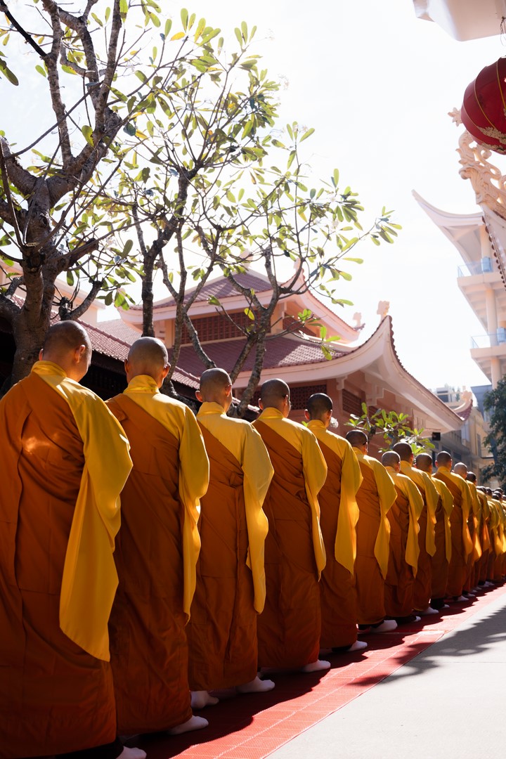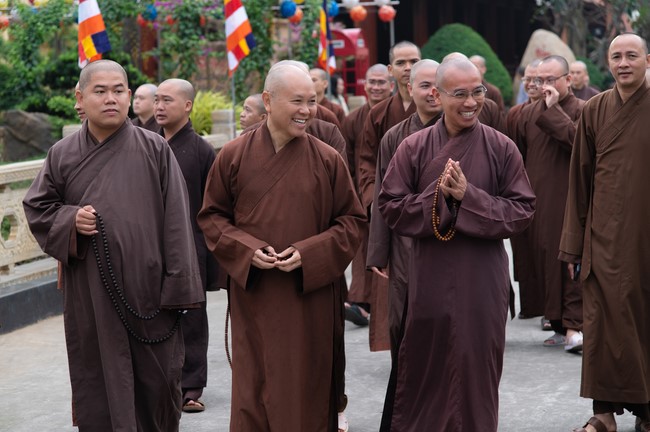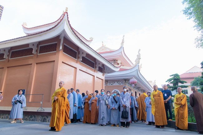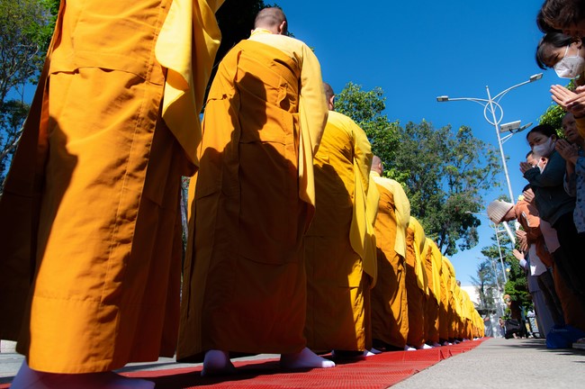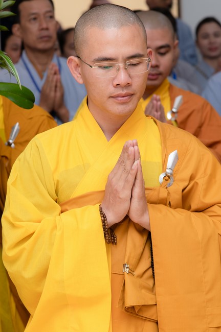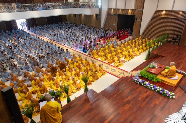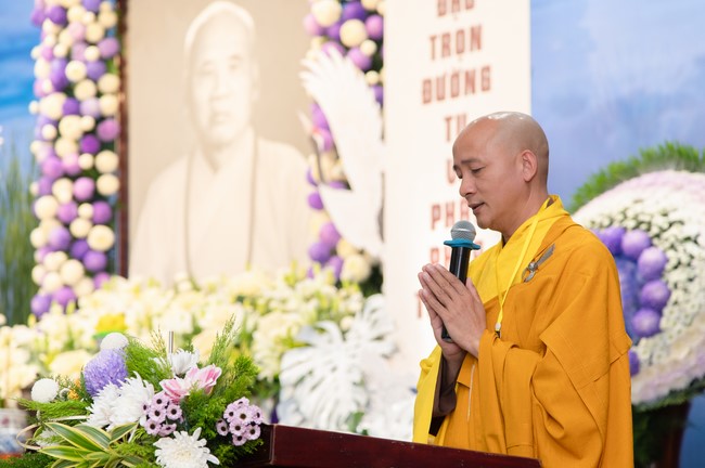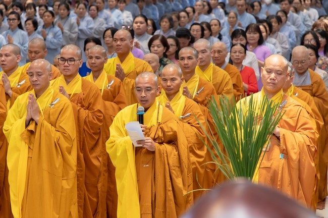 Vào lúc 08h45, đại chúng đồng thành kính cung thỉnh chư Tôn đức kinh hành, nhiễu quanh Tháp tổ, sau đó hướng về Pháp đường 1, tòa nhà Pháp Luân cử hành nghi thức lễ tưởng niệm.