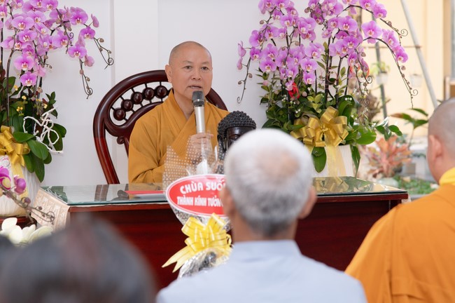 Hoà thượng Thích Chân Tính sách tấn đại chúng trong ngày giỗ tổ khai sáng chùa Hoằng Pháp