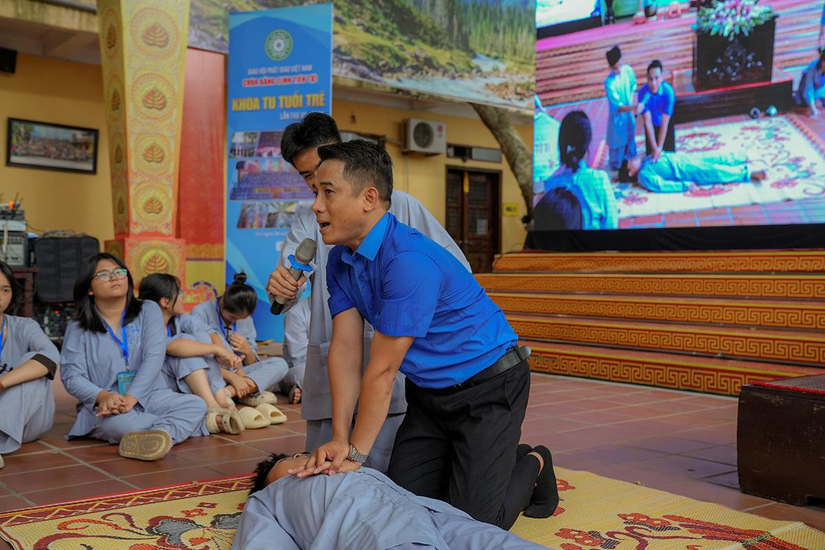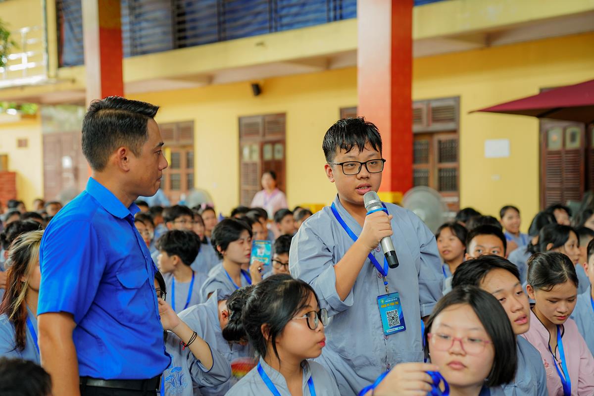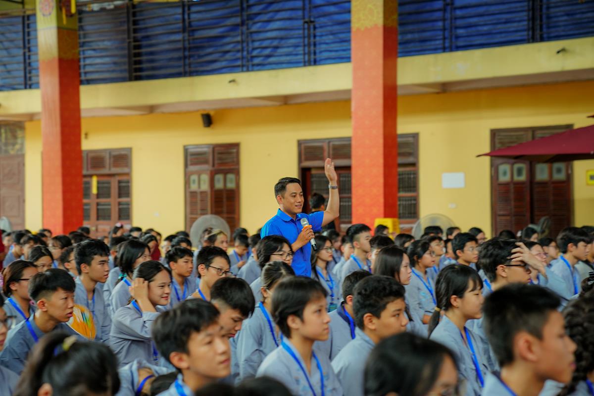 Buổi chiều, đã diễn ra chương trình hướng nghiệp, dạy kỹ năng sống của thành đoàn Hà Nội. Các bạn khóa sinh đã được giao lưu với Thạc sĩ Nguyễn Minh Cường – HLV cấp I trung ương hội LHTN Việt Nam với chuyên đề chia sẻ kỹ năng ứng phó với tình huống nguy hiểm.