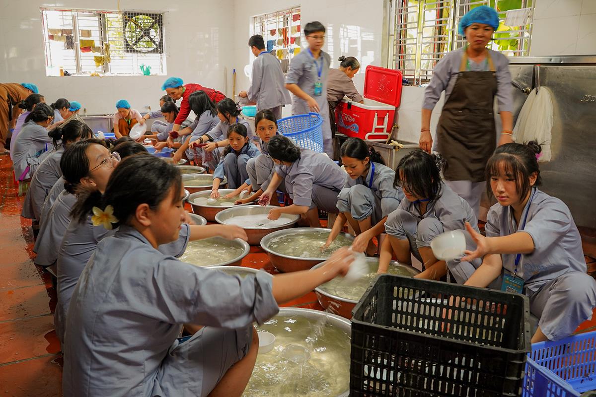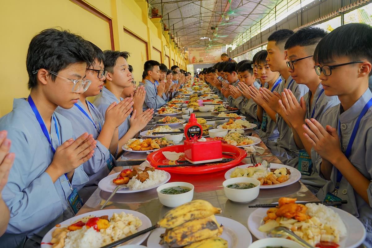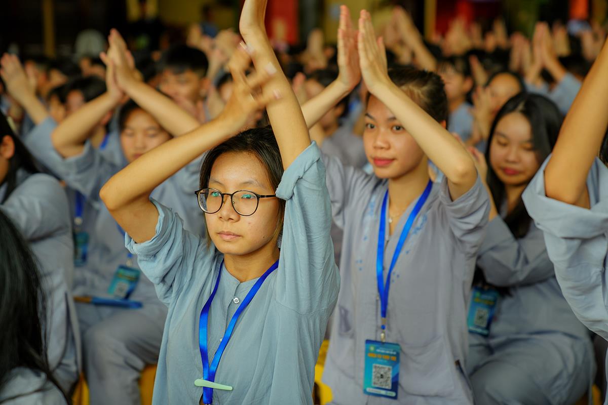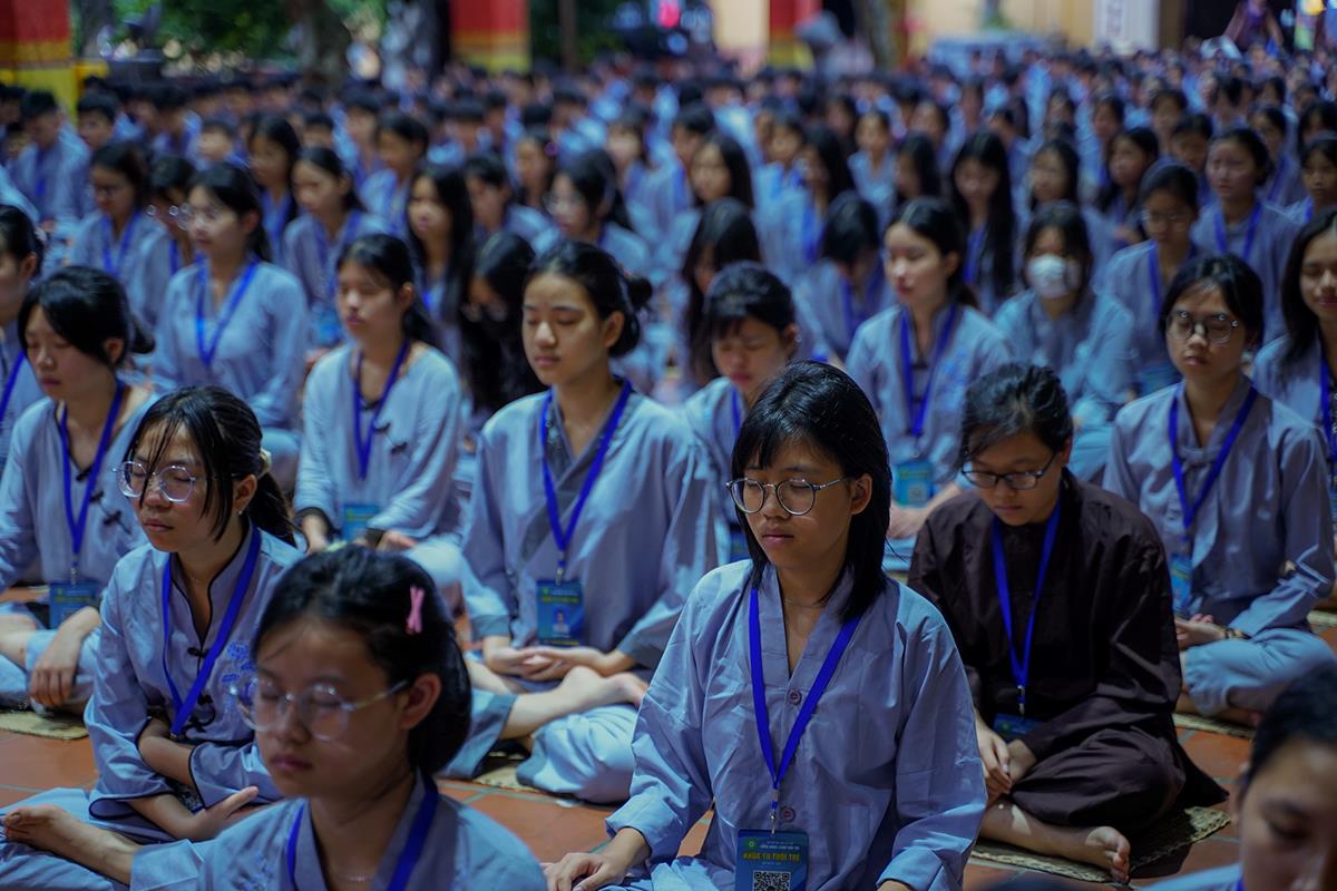 Vào lúc 5h00 sáng, tiếng chuông chùa ngân vang cũng là lúc các bạn khóa sinh bắt đầu một ngày mới tại khóa tu. Đây là ngày thứ 2 các bạn phải dậy sớm nên nề nếp sinh hoạt dần vào khuôn khổ. Các bạn đã được quý thầy hướng dẫn ngồi thiền, học cách điều hòa hơi thở để biết cân bằng cảm xúc trong cuộc sống.