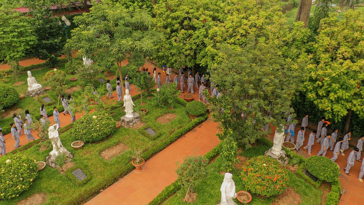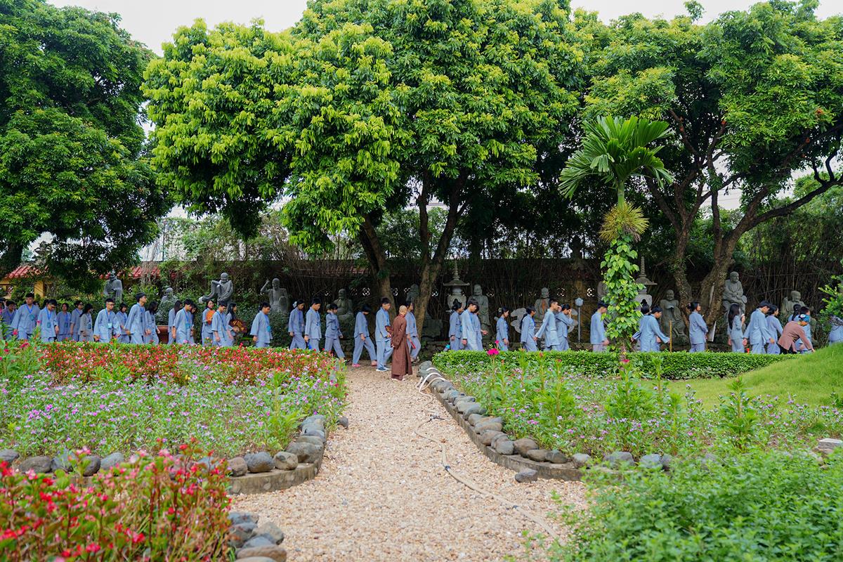 Sau đó, các bạn đã cùng quý Thầy đi bộ quanh khuôn viên chùa trước khi xuống trai đường dùng điểm tâm sáng. Đây là ngày thứ ba mà các bạn sống dưới mái già lam này, khung cảnh nơi đây đã dần trở nên quen thuộc.