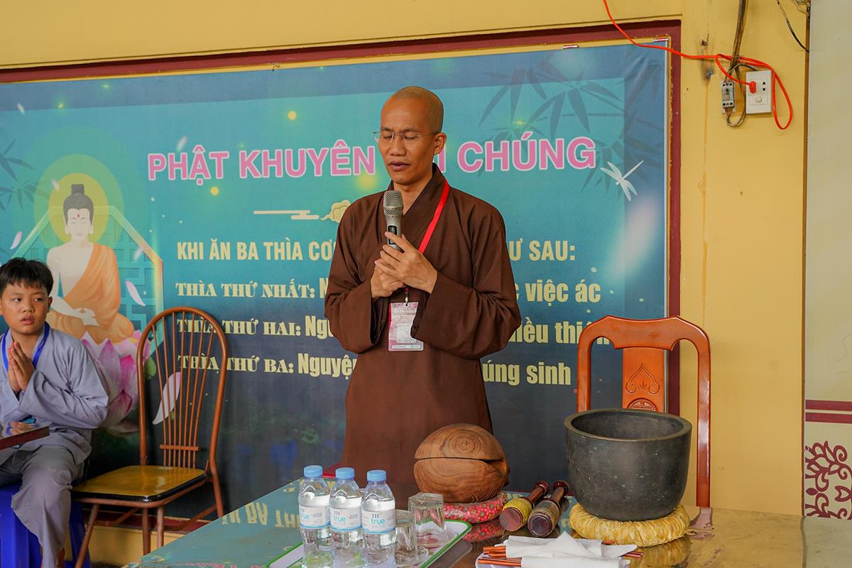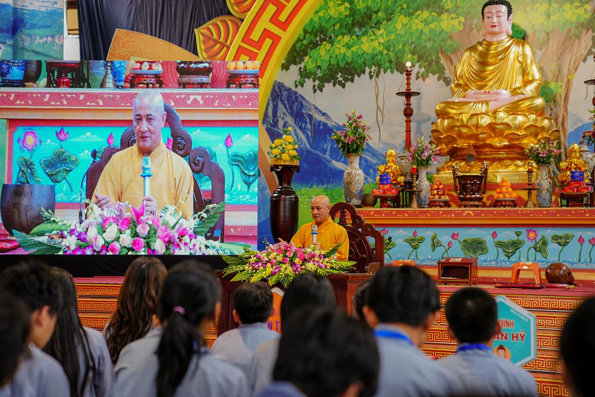 Hòa thượng nhắc lại câu chuyện về ngài Lý Công Uẩn là một chú tiểu được thiền sư Vạn Hạnh nuôi dưỡng trong chùa, Ngài được nuôi dưỡng bởi các đức tính từ bi, trí tuệ, bao dung… trong đạo Phật và sau này đã trở thành một vị vua của triều Lý, đó là vua Lý Thái Tổ. Hòa thượng mong các bạn trẻ khi được nuôi dưỡng trong môi trường Phật pháp giống như Ngài Lý Công Uẩn thì sẽ trở thành những con người hữu ích cho xã hội trong tương lai.