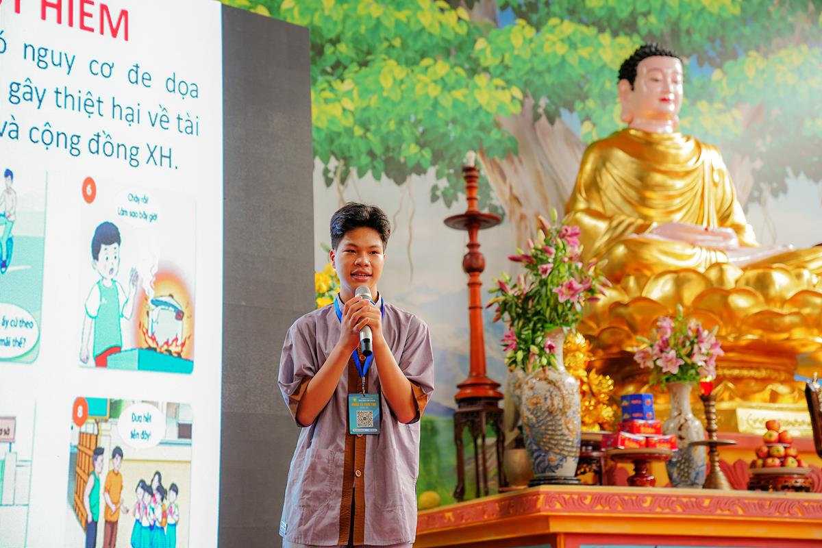 Hòa thượng chia sẻ trong đạo Phật có 4 cái trẻ, có 4 cái nhỏ mà vừa đáng sợ, vừa đáng quý. Đó là: con rắn nhỏ, đốm lửa nhỏ, hoàng tử nhỏ và chú tiểu nhỏ. Trong đó, Con rắn tuy nhỏ nhưng chứa nọc độc cực nguy hiểm, có thể cắn chết người. Đốm lửa tuy nhỏ nhưng nếu bừng lên thì có thể thiêu rụi cả khu rừng. Vị hoàng Tử nhỏ, nếu được nuôi dưỡng tốt sẽ trở thành một vị vua, minh quân để đem lại bình an cho dân tộc, đất nước. Chú tiểu nhỏ nếu được nuôi dưỡng đúng chân lý của Đức Phật, sẽ trở thành một nhà sư đem chân lý của đức Phật để giúp ích cho nhân loại trở về với con đường thiện.