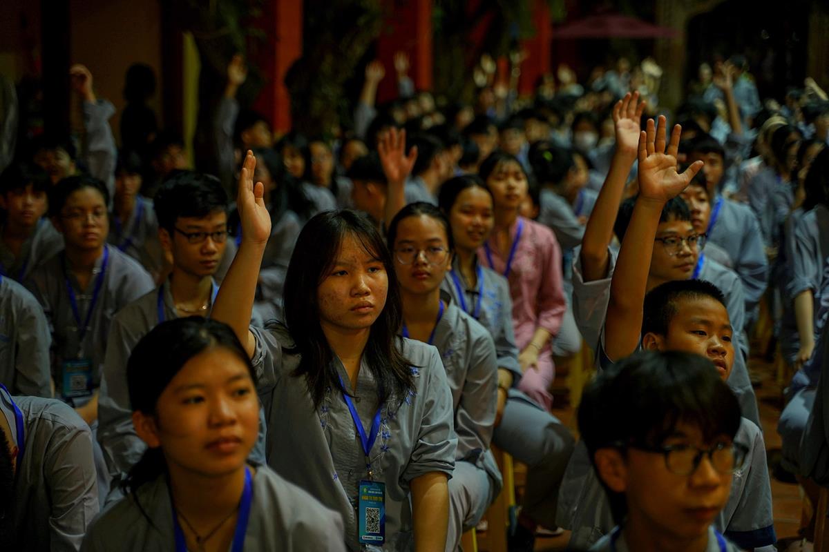 Để đạt được điều này, trong đạo Phật, điều đầu tiên cần có đó là niềm tin, cũng giống như việc cha mẹ khi đưa các bạn đến chùa, đầu tiên chắc chắn phải có niềm tin ở chùa. Để khi đến đây, dưới sự dìu dắt của quý thầy, các bạn trẻ sẽ học được những điều tốt, điều hay. Niềm tin phải đi đôi với trí tuệ, nếu chúng ta không có niềm tin là tự đánh mất mình. Nếu không có niềm tin sẽ làm mình tiêu cực, giải đãi, lười biếng.