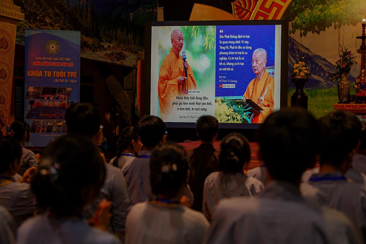 Cuối buổi, Hòa thượng mong muốn các bạn khóa sinh hãy cố gắng thực tập những lời dạy của Đức Phật trong những ngày tu học tại đây để có được sự an lạc, hạnh phúc trong cuộc sống. Đặc biệt, hãy tiếp cận mọi điều, mọi việc bằng trí tuệ và hiểu biết để không bị nhầm đường, lạc lối và có tư duy sai lệch.