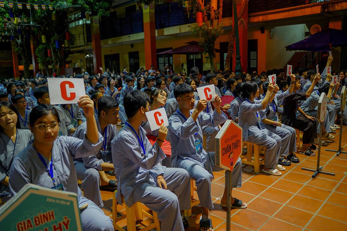 Tối cùng ngày là chương trình Gameshow với chủ đề "Con về bên Phật". Trải qua 2 vòng thi trắc nghiệm và 1 vòng thi hùng biện, các khóa sinh đã thể hiện được kiến thức của mình về Phật giáo cũng như lịch sử dân tộc Việt Nam, khiến quý Thầy cô trong Ban tổ chức vô cùng bất ngờ. Ngày thứ ba của khóa tu đã khép lại trong niềm an vui hỷ lạc.