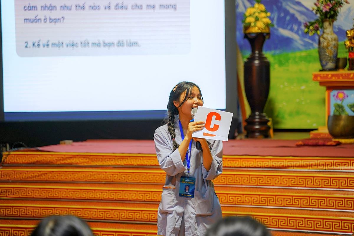 Bên cạnh đó, chương trình đã hướng dẫn cũng như tạo cơ hội cho các bạn khóa sinh hiểu, thực hành kỹ năng thuyết trình trước đám đông bằng cách thể hiện bản thân qua việc trả lời các câu hỏi, đồng thời nhận những phần quà hấp dẫn của chương trình.