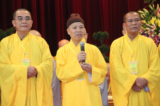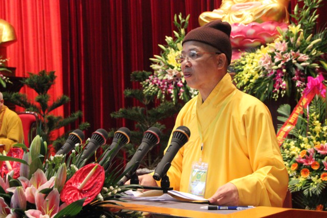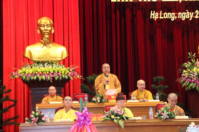 TT Thích Thanh Quyết thay mặt toàn BTS tuyên bố mãn nhiệm, đồng thời trình danh sách nhân sự nhiệm kỳ VIII trong BTS Phật giáo Tỉnh Quảng Ninh.