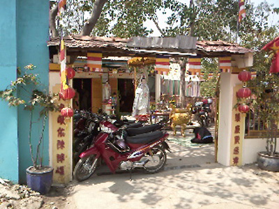 Chúng tôi hỏi một người dân, hôm nay (ngày Rằm tháng Giêng) có vị xuất gia nào ở đó không? Một người phụ nữ ngoài 40 tuổi nói “có”, và dẫn chúng tôi đến “ngôi chùa” này.