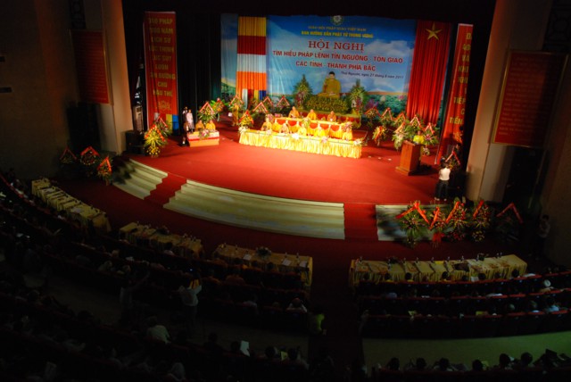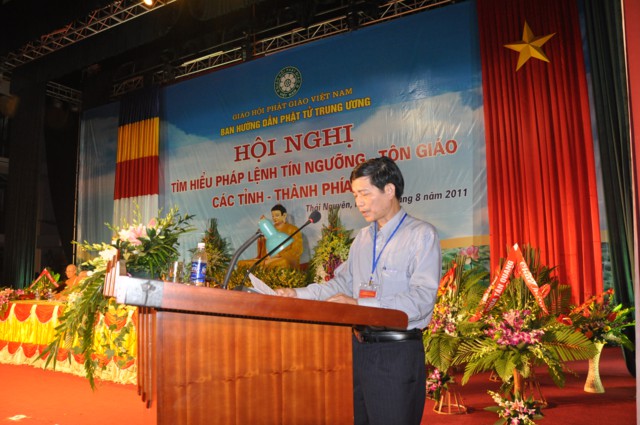 Hội nghị đã được nghe ông Bùi Hữu Dược – Vụ trưởng Ban tôn giáo chính thuyết trình Pháp lệnh tín ngưỡng Tôn giáo.