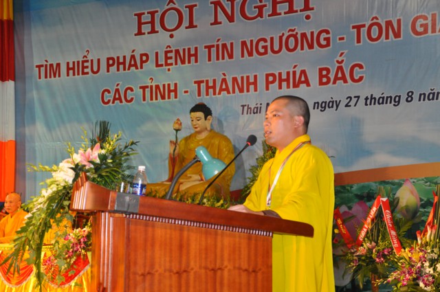 Nhân dịp này, HT Thích Thanh Sam thay mặt TW GHPGVN ban đạo từ Hội nghị. Hòa thượng đã tán thán chương trình hội nghị hướng dẫn Phật tử tìm hiểu pháp lệnh tín ngưỡng tôn giáo của Ban hướng dẫn Phật tử TW kết hợp với BTS Phật giáo tỉnh Thái Nguyên, qua Hội nghị các cơ quan ban ngành cũng như BTS các tỉnh thành hội và bà con Phật tử được hiểu rõ hơn về pháp luật tín ngưỡng tôn giáo góp phần vào việc xây dựng GHPGVN, giúp cho các hoạt động Phật sự, hướng dẫn Phật tử ngày càng vững mạnh.